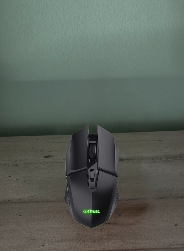 Mouse da Gaming. Ambidestro. RF Wireless Ottico 4800 DPI. Ricaricabile, autonomia 80h. 4 opzioni Luci LED.Nero. Trust GXT 110 Felox.